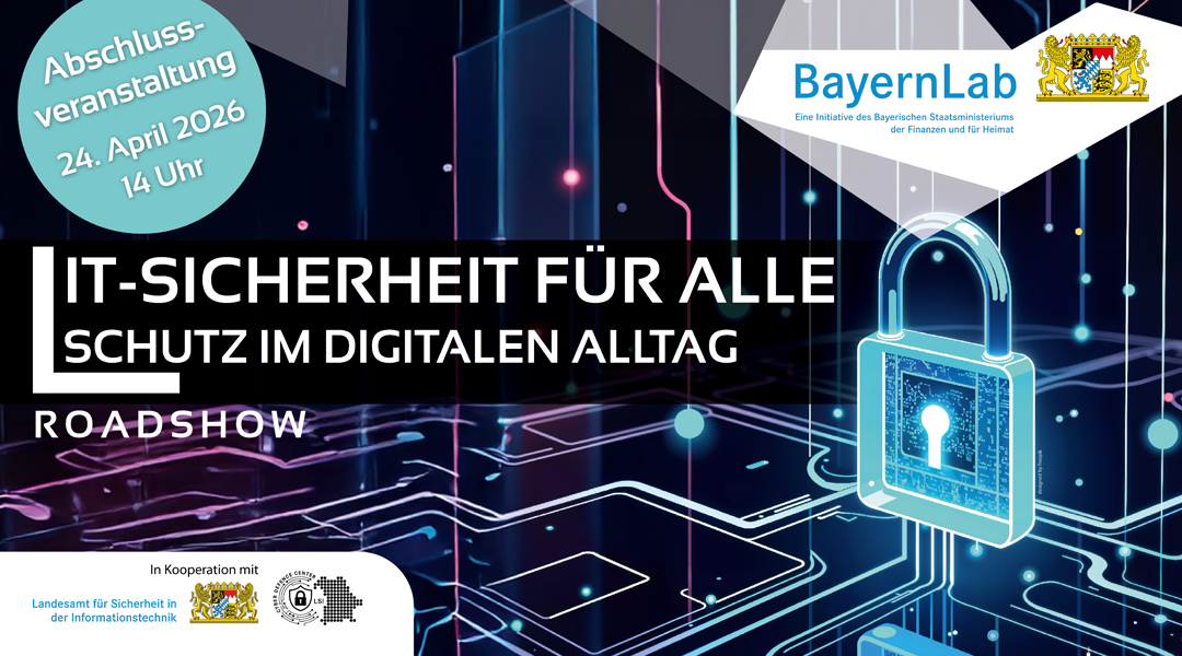 Um Bürgerinnen und Bürger für digitale Bedrohungen zu sensibilisieren und praktische Tipps zu geben, waren die BayernLabs gemeinsam mit dem Landesamt für Sicherheit in der Informationstechnik auf Roadshow durch ganz Bayern unterwegs.
